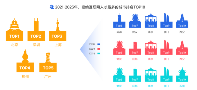 京深沪连续3年成为吸纳互联网人才数量TOP3