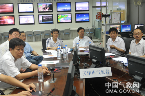 天津副市长雨夜到气象局指导汛期工作