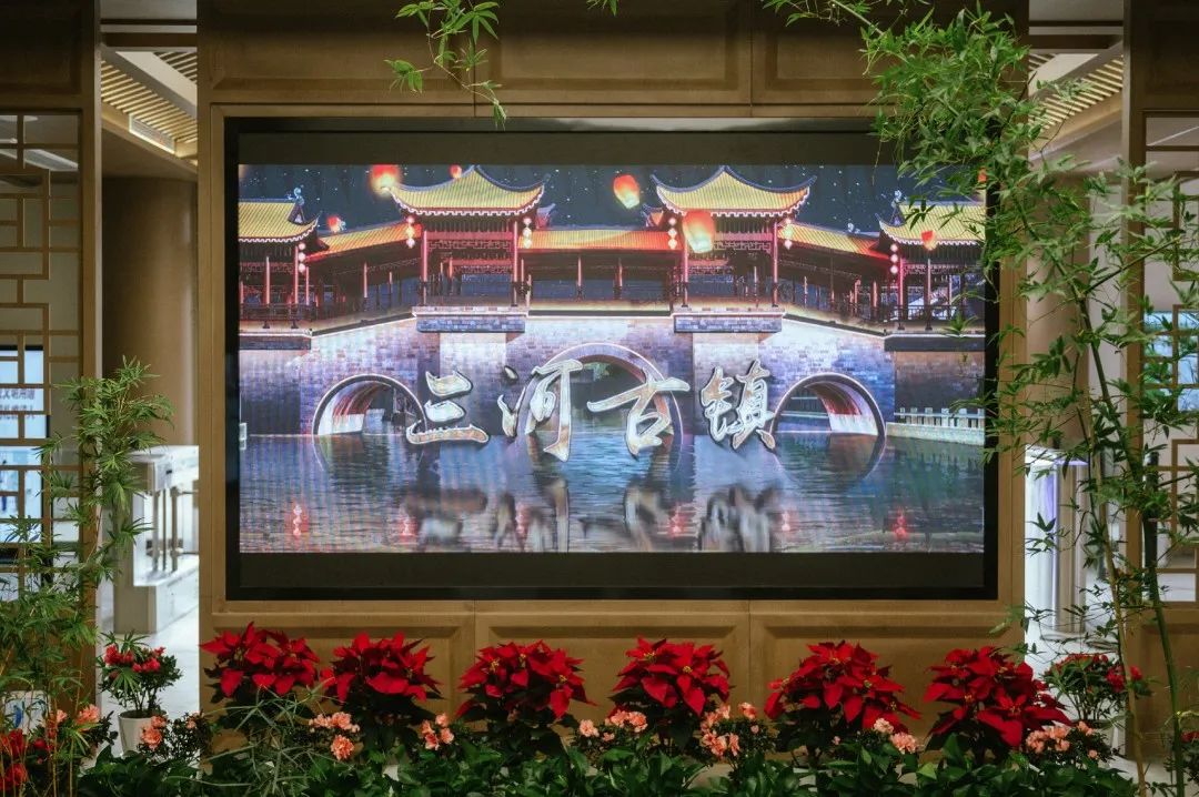 随着三河古镇不断丰富旅游新业态,景区服务能级也在不断提档升级。眼下,改建完成的游客服务中心已投入使用,咨询服务、购票、景区入口、纪念品展销等功能区一应俱全。相较以往,游客服务中心立面木色调整为更为厚重有历史底蕴的棕色,并去除部分景观空间,增加广场区域,形成大面积集散广场空间,增加石鼓限定人车分流,改变了以往各功能区分散的状态。