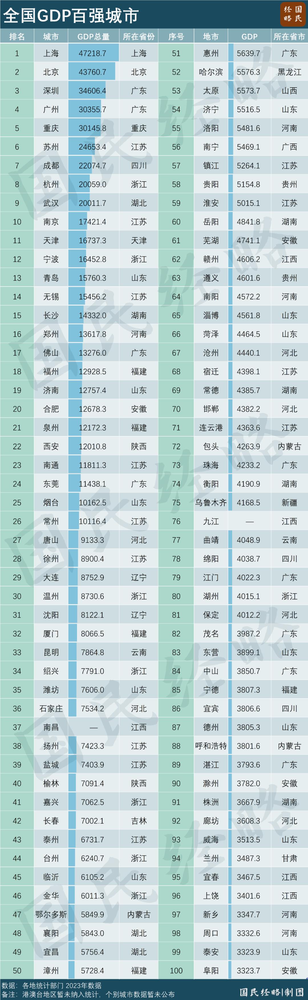 随着各地统计公报陆续对外发布,最新全国GDP百强城市终于揭晓。