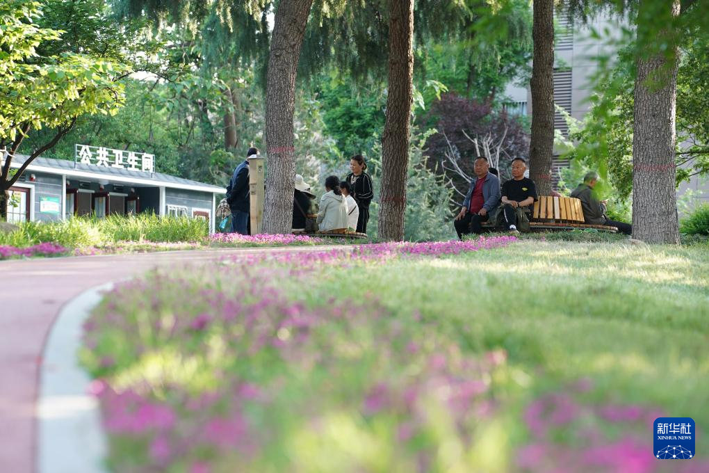 5月9日,宝鸡市民在一处口袋公园内休息。