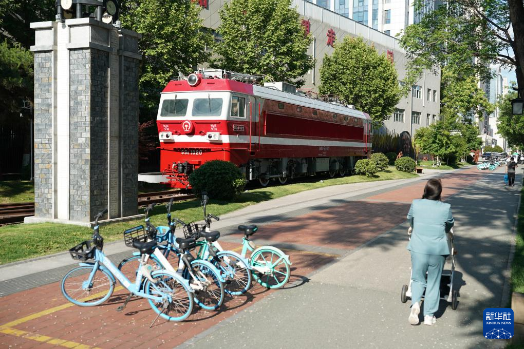 宝鸡市区建设的以宝成铁路为主题的口袋公园(5月9日摄)。