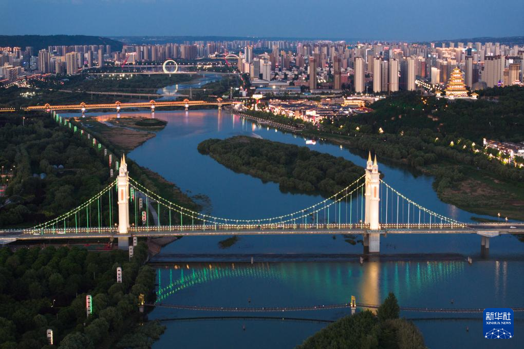 宝鸡市区渭河沿岸夜景(5月9日摄,无人机照片)。