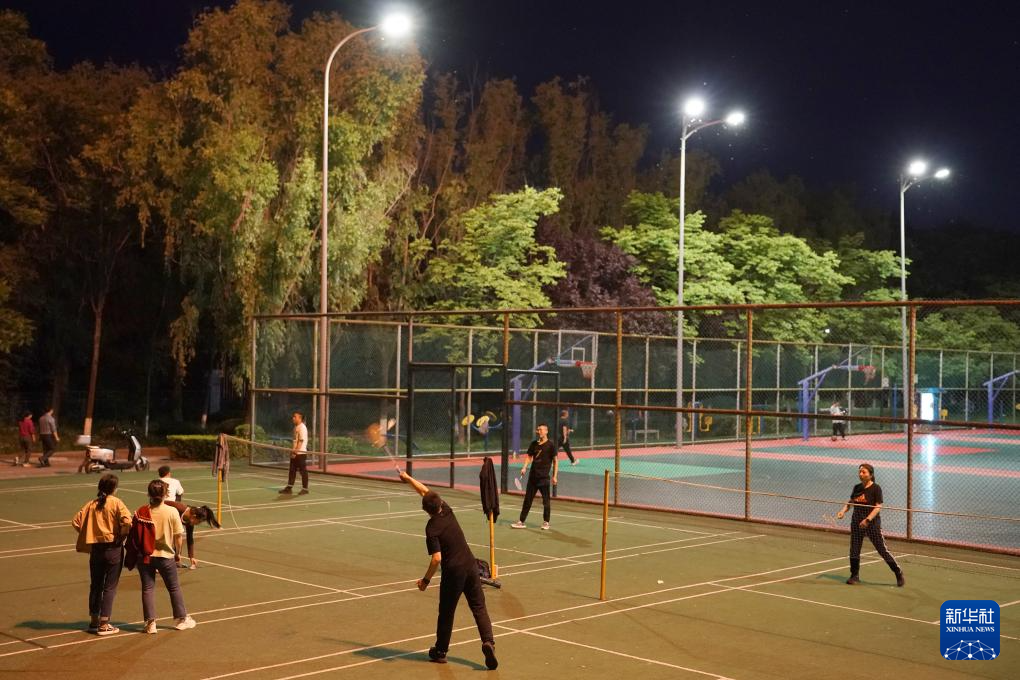 5月9日,宝鸡市民在市区一处运动休闲公园内锻炼。