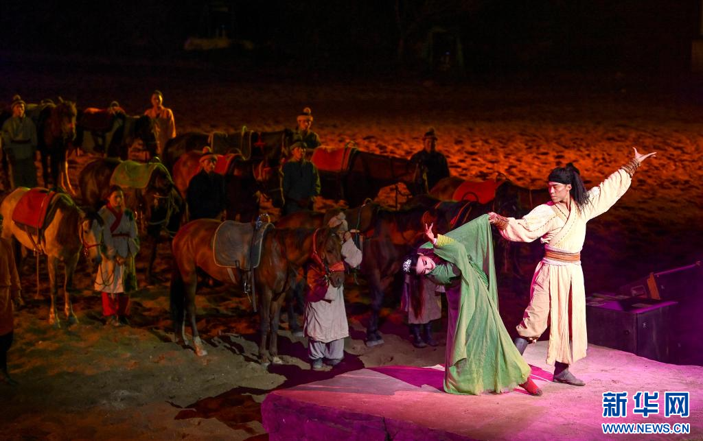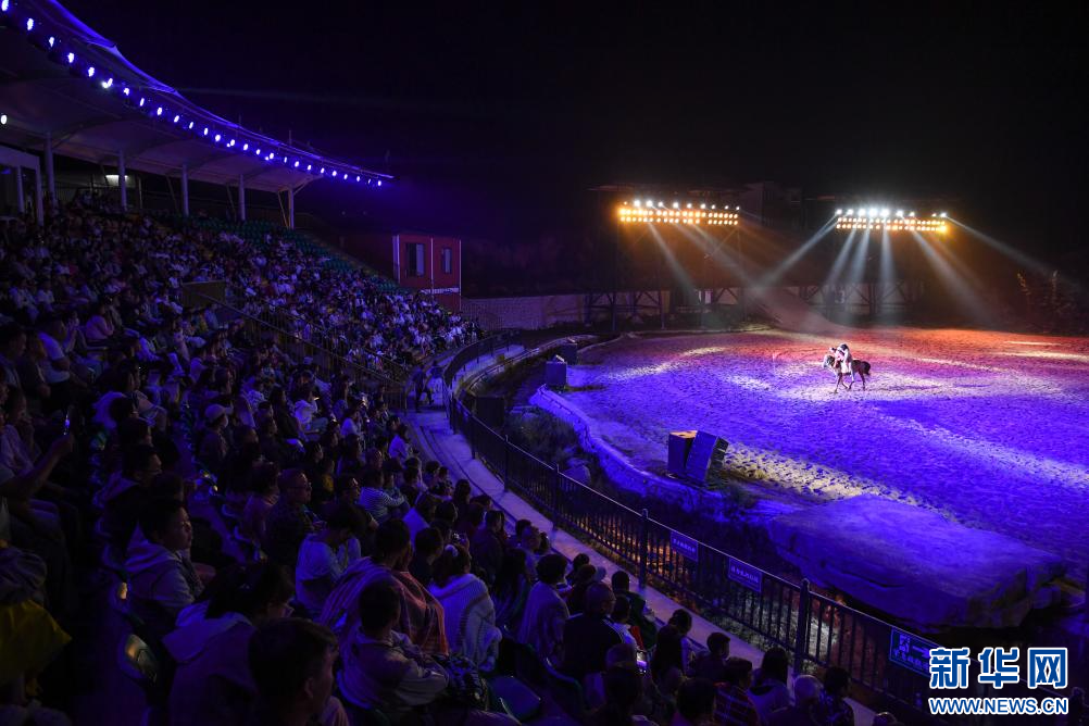 8月2日,演员在关山草原景区的实景演艺《大秦关山》上表演。