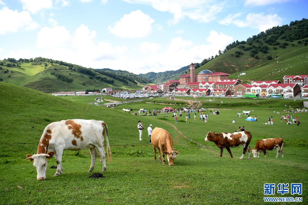 夏日的关山草原气候凉爽,草甸丰茂,吸引众多游客前来避暑休闲。
