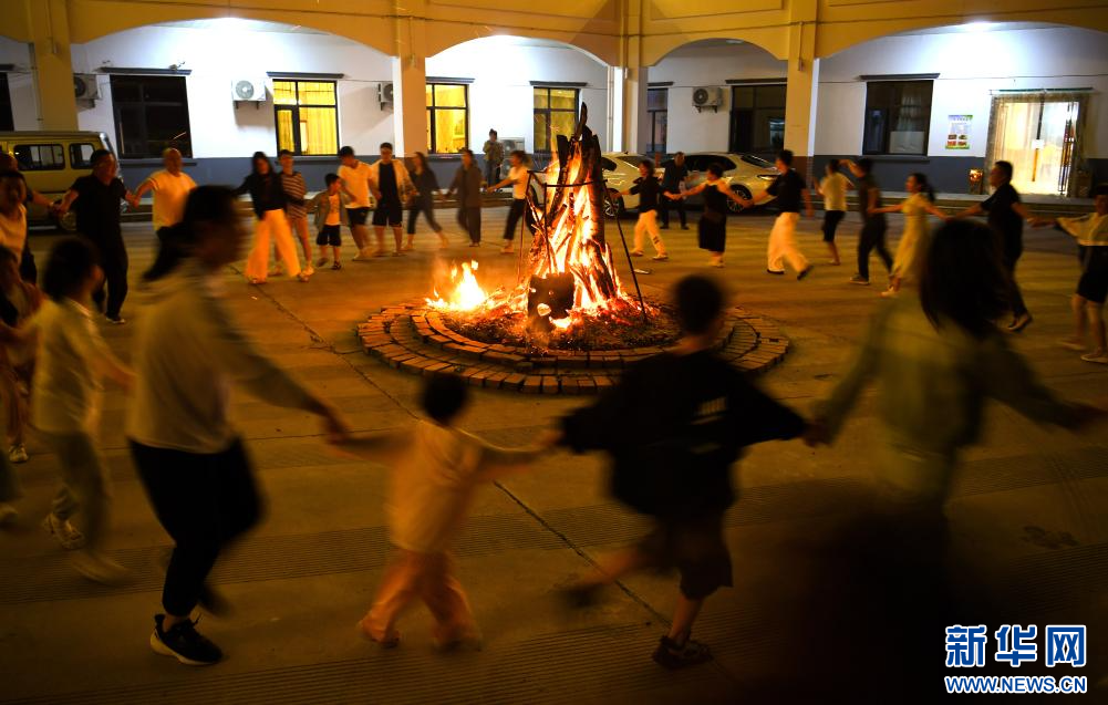 8月2日,游客在关山草原景区的篝火晚会上联欢。