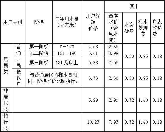 居民每个用水家庭不超过4人(含4人),执行价格表中规定。超过4人的,每增加1人,年增加用水量30立方米。需到供水企业登记认证,认定后有效期为2年。