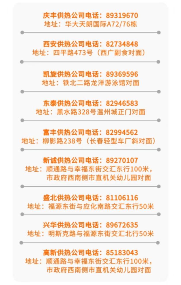 2、办理新停供及复热的用户在9月20日前到所属供热分公司收费大厅办理缴费,逾期不再受理。(新停供及复热的用户需携带房主身份证办理,特殊原因可委托代办人办理)