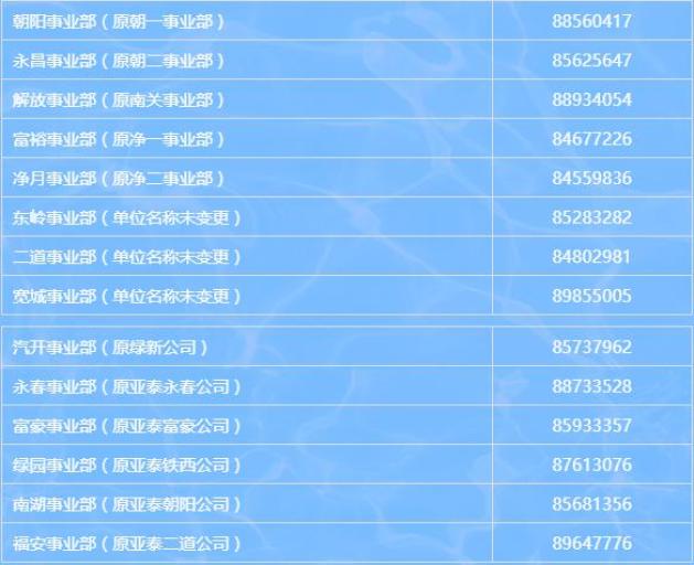 经开供热集团各分公司地址及收费联系电话