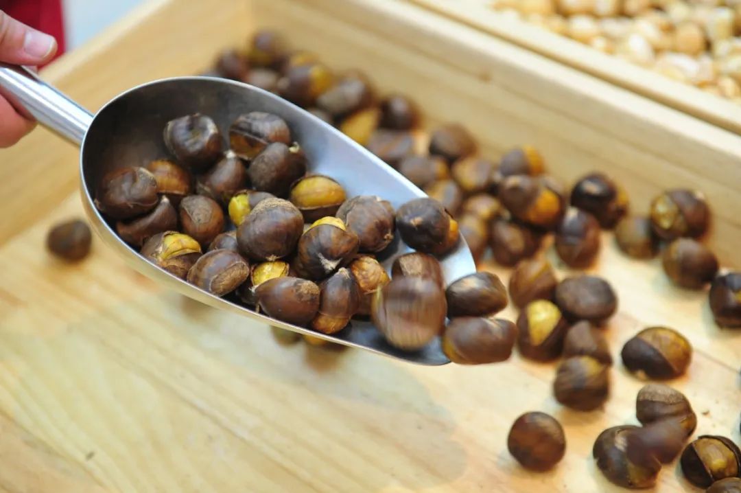 薛记炒货的冻栗子个头大又饱满,上面有一层白霜,而且咬一口更甜了。