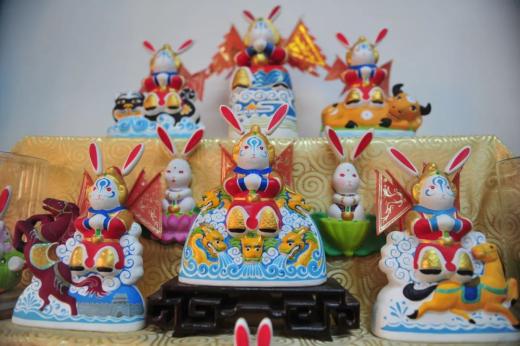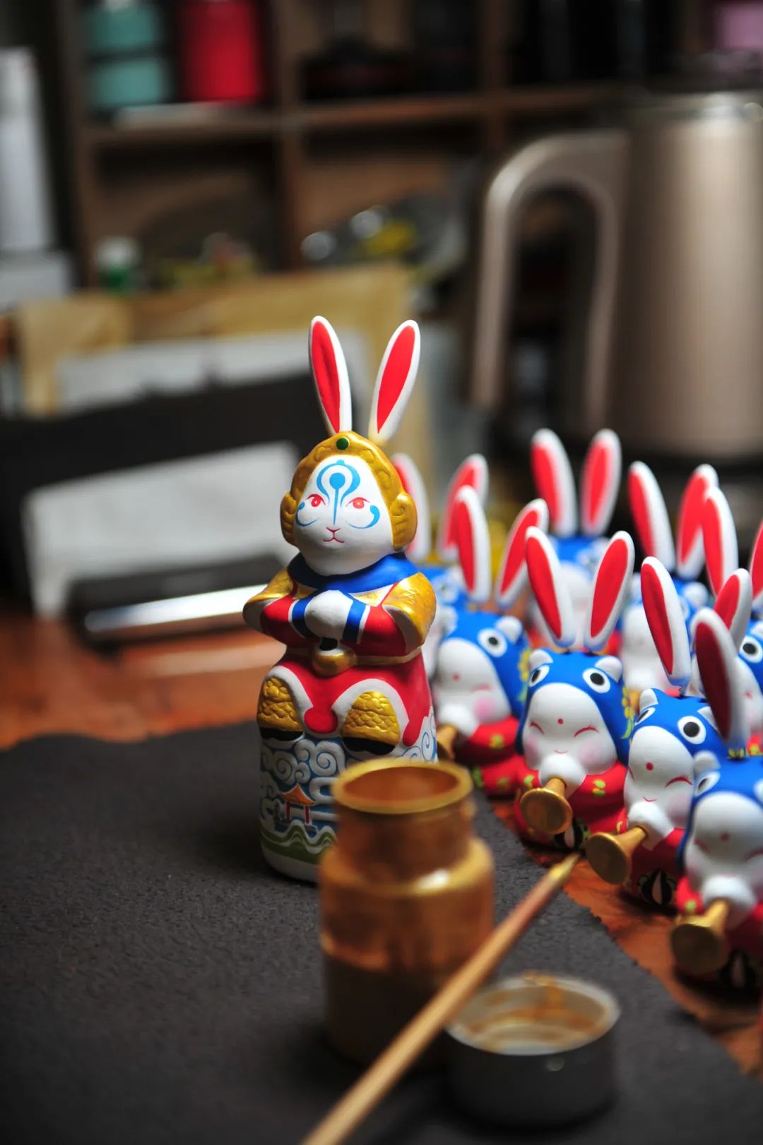 “泉城兔子王”是济南本土的工艺师傅创作的泥塑作品,小兔子形象的泥塑里加入了不少泉城元素,是极具代表性的济南民间手工艺品。