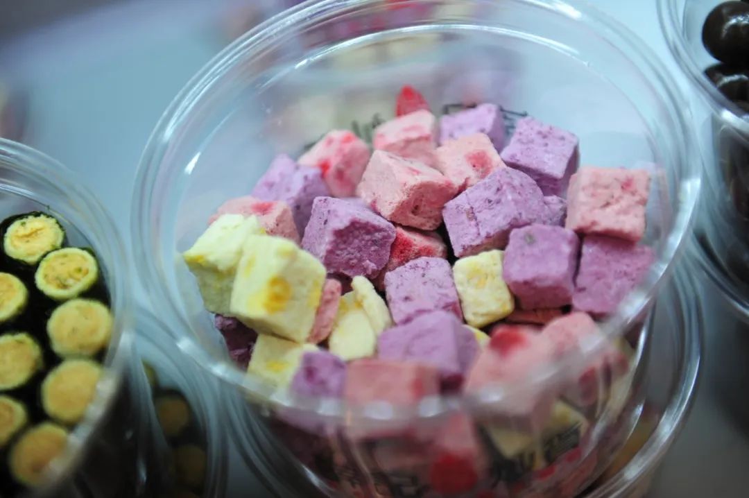 盐霜瓜子真的是又大颗又好吃,各种果干是那种口感适中,酸味十足,咬起来真的很带劲的。一口下去口水都出来了,没有胃口的时候很适合来几个,开胃!