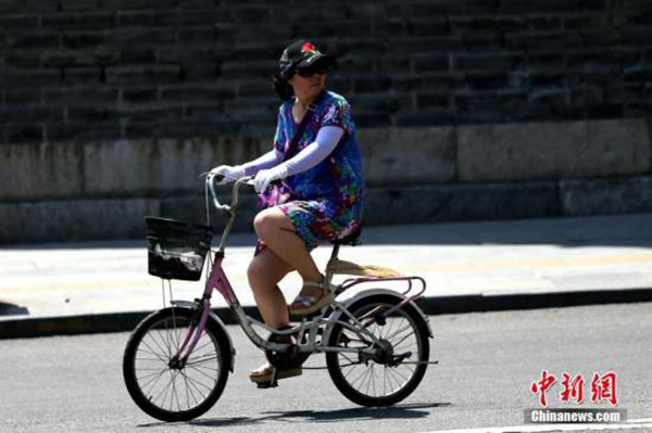在西安街头,只觉热风逼人无处躲藏,裸露的皮肤在烈日的炙烤下阵阵发烫,走几步便汗流不止。街上部分共享单车的座椅已被“烤”出焦味,金属车身烫得不敢触摸。街头行人不多,平日在西安城墙根休闲的老人也难觅其踪。