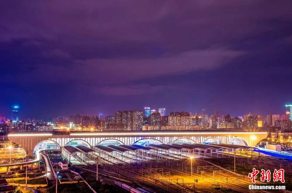 石家庄火车站夜景(资料图)。郑晓南 摄