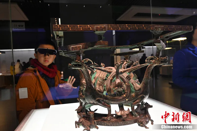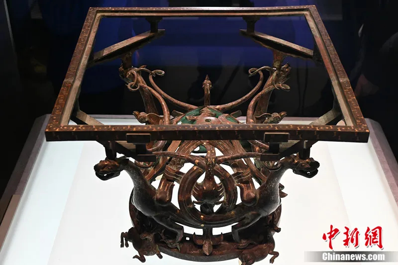 错金银四龙四凤铜方案座。中新社记者 翟羽佳 摄