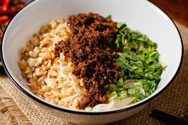 担担面,是四川成都和自贡著名的地方传统面食小吃,据说源于挑夫们在街头挑着担担卖面,因而得名。担担面是将面粉擀制成面条,煮熟,舀上炒制的肉沫而成。成菜面条细薄,卤汁酥香,咸鲜微辣,香气扑鼻,十分入味。担担面是四川小吃中的代表性食物,为人们品尝四川小吃时的必备佳肴,2013年,担担面入选商务部、中国饭店协会评选的“中国十大名面条”。担担面更是入选由中国烹饪协会主办“中国地域十大名小吃”四川榜名单。还被中国旅游协会评定为“中国金牌旅游小吃”、“四川金牌旅游小吃”称号等。 【 详细>>】