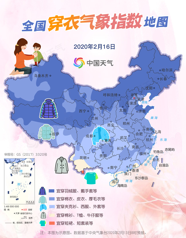 16日,强冷空气的主体已经渗透至全国大部地区,西南地区东部,江汉,江南等地最高气温只有5℃左右,而华南一带,最高气温也会降至10℃左右,伴随着强降雨,湿冷感觉尤为明显。纵观全国,大部地区都进入“冷色区”,北方依然“冷如冰窖”,羽绒服、棉服一个都不能少,而江南、华南多地也需要穿着夹克衫或厚外套方可保暖;海南降温也十分明显,部分地区降温幅度可能超过15℃,服装也必须由短袖过渡到“棉衫、牛仔服”,方可防寒。