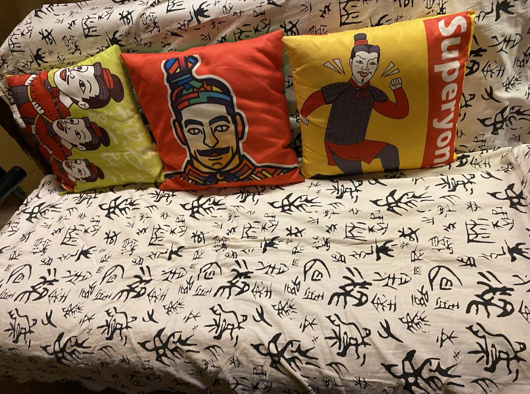 原来,另外一个房间睡觉的天花板上,居然也贴上了满满的兵马俑图片