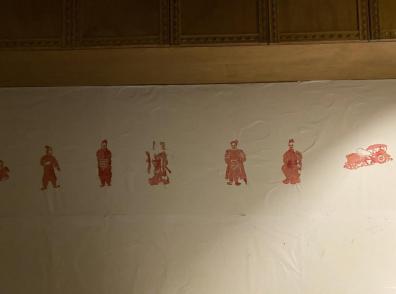 就连墙上的壁画也如此这般,呃...勉强把它称之为《兵马俑的微笑》好了