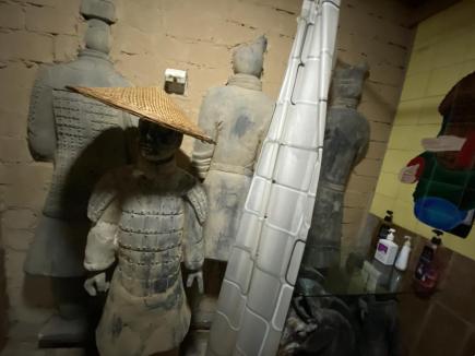 他从工厂购买了几十只仿制的兵马俑,还有各种供客人把玩的小兵马俑等等设备,才造出了这世上独一无二的兵马俑主题民宿