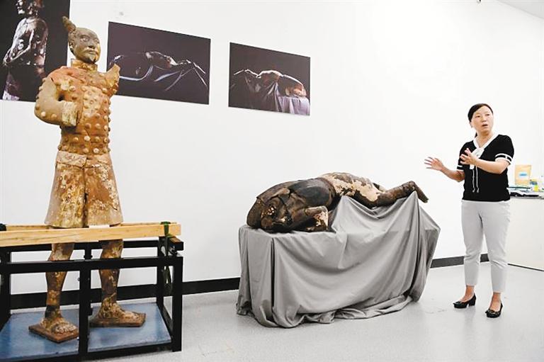 秦陵博物院联合中国丝绸博物馆开展了4号百戏俑彩绘纹饰的纺织品复原工作。