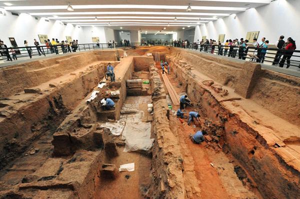 秦始皇帝陵K9901陪葬坑,位于秦始皇帝陵陵园的东南部,内外城垣之间,距离秦始皇陵封土约300米,是一座内有东西向三条过洞的陪葬坑,总面积约800平方米。