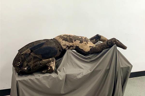 秦陵博物院文物保护部主任夏寅研究员介绍,28号俑的彩绘工艺和兵马俑比较像,在陶的上面刷生漆,在生漆上面用矿物颜料做彩绘。由于生漆对湿度非常敏感,地下埋藏比较潮湿,一旦发掘干燥之后就会导致生漆层卷曲脱落,所以要迅速湿水,然后再做处理。比如在考古现场搭建小的环境仓,让文物保持高湿状态。另外也会用化学试剂来吸收水分,不让水分散失,这和女士用的保湿霜作用一样。