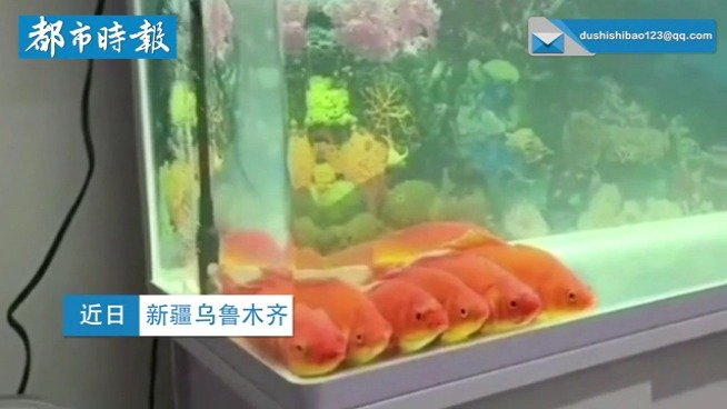 3月2日,新疆乌鲁木齐。罗先生的金鱼会“看电视”,当罗先生看电视时,几条金鱼并排聚在一起,对着电视“聚精会神”,当他关掉电视机后,金鱼就四散开来。水产专家表示,这只是金鱼对光线和声音最基本的生理条件反射,“金鱼不可能看电视”。