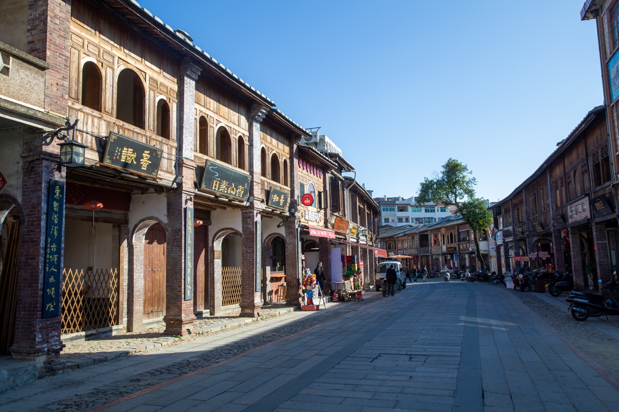 眼前的这条古街最大程度保留了闽南骑楼和老街风貌,红砖深巷,游人如织,数百栋骑楼矗立在正街的两侧,改造后的老宅和商铺,变成了武术馆、时尚餐厅、咖啡馆和文创基地。