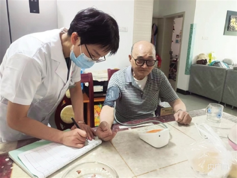 陈会琴入户为老人检查身体(酒泉市委网信办供图)