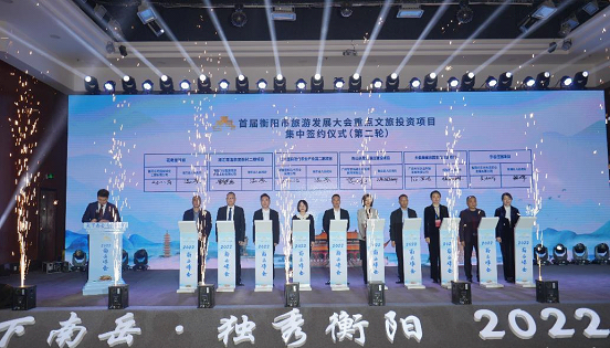 会上,环南岳衡山旅游经济圈、华侨城·来雁新城文化旅游区、南岳祝融小镇、金融+旅游等重点文旅项目进行精彩路演。中铁文旅南岳康养项目、中国(耒阳)油茶博览园EOD项目、天子山火文化园等重点文旅投资项目参与签约仪式。今年以来,衡阳市已签约重点文旅投资项目23个,投资总额319亿元,涵盖休闲度假、康养旅游、乡村旅游等业态,为推动衡阳文旅产业高质量发展积蓄力量、提供新动能。