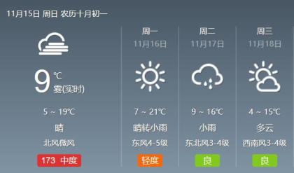 16日:陕北晴天转多云,关中、陕南晴天间多云。关中地区有轻到中度霾。