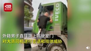 ▲11月13日,网曝福建厦门一开保时捷的外籍男子因渣土车双实线左转险些被撞。尽管货车司机不停道歉,外籍男子不顾妻女阻止仍不依不饶,直接跳上驾驶室门,对大货司机进行言语和肢体威胁。据厦门警方通报,货车司机周某平跨越双实线违法左转,险些与直行小型客车发生刮擦。经民警批评教育,双方均认识到错误,该外籍男子主动向周某平赔礼道歉,双方达成谅解。