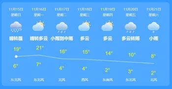 19日:全省多云间阴天;陕北、关中北部日平均气温下降4~6℃。