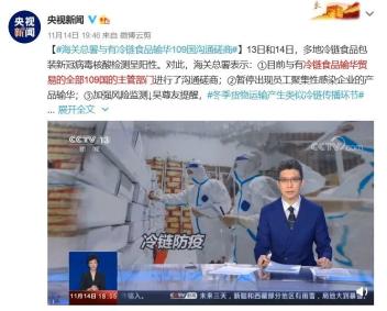 ▲多地冷链食品包装新冠病毒核酸检测呈阳性,海关总署表示,已与有冷链食品输华贸易的全部109国的主管部门进行了沟通磋商。