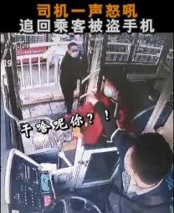 ▲11月12日,河南郑州,公交司机张师傅驾车行驶进站时,一男子趁女乘客上车时偷手机。张师傅立即指着男子大声喝斥:干啥呢你!放那儿!男子赶紧将手机还给女乘客。网友:司机师傅干得漂亮!