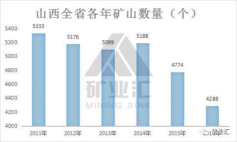★(三)矿山总量减少35%,大中型矿山占比提高到20%;煤矿平均单井生产规模达到120万吨/年,截止到2016年底,陕西全省矿山数为4288个,较上年度下降了10.18%。