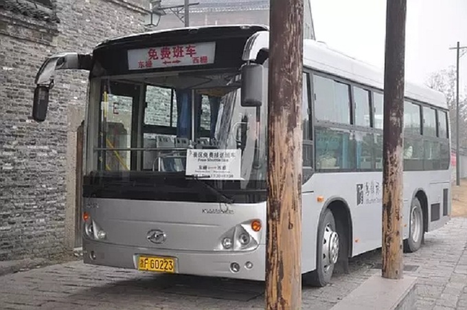 除了往返于乌镇汽车站、东栅景区、西栅景区之间的K350路公交车,乌镇的西栅景区与东栅景区之间,也有一辆效率超高的接驳车——东西栅景区免费班车。