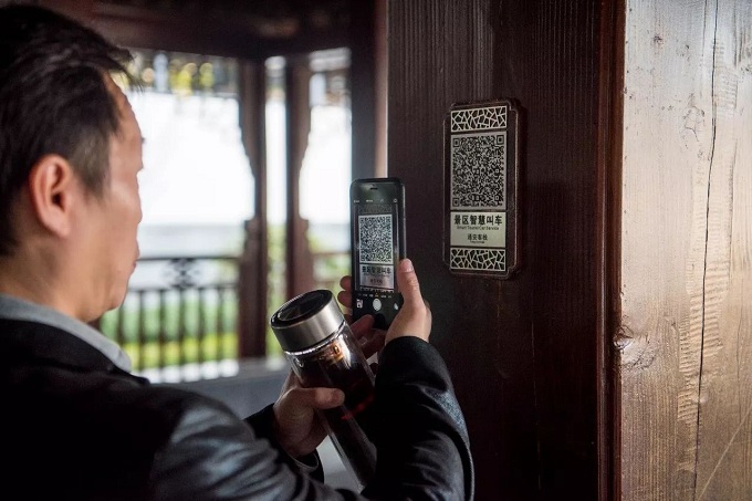 当你走遍西栅景区、疲惫不堪时,不妨举起手机,扫描西栅景区的“智慧叫车”二维码,司机师傅便会驾着七彩祥云、开着游览车来接你,是不是很方便?