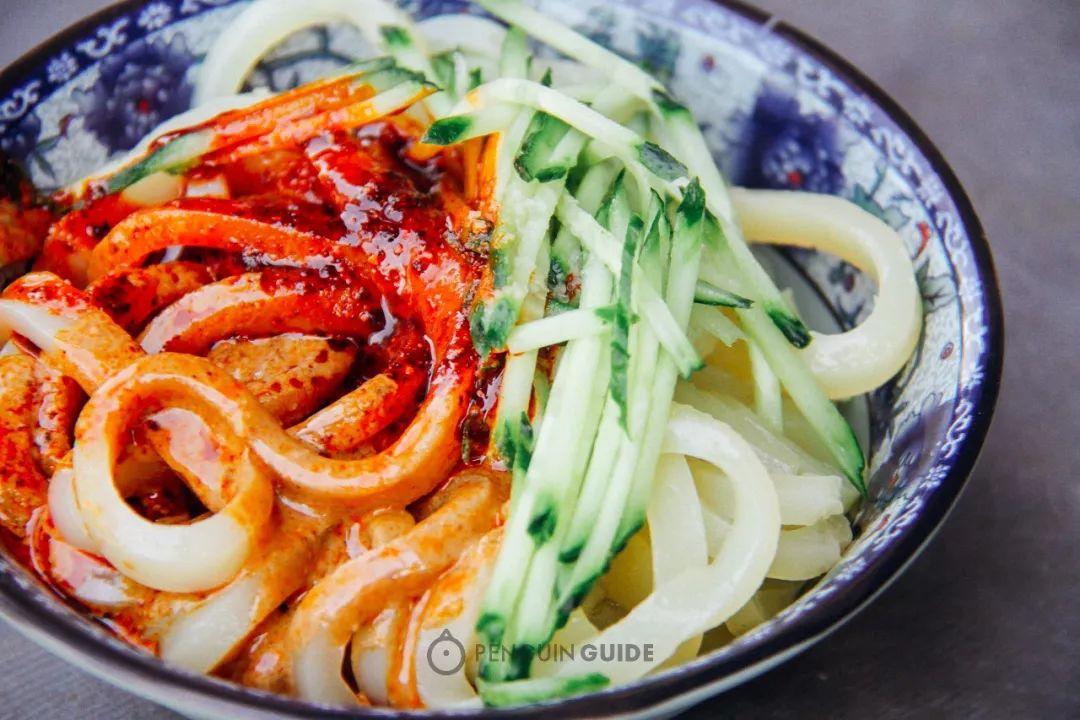 浓郁的芝麻酱配上西北的油泼辣子,才是正宗天水味。金黄温润的面皮,筋道柔软更具面的香气,加入清爽的黄瓜丝,夏天没食欲的时候,就盼着这么碗面皮子解馋。