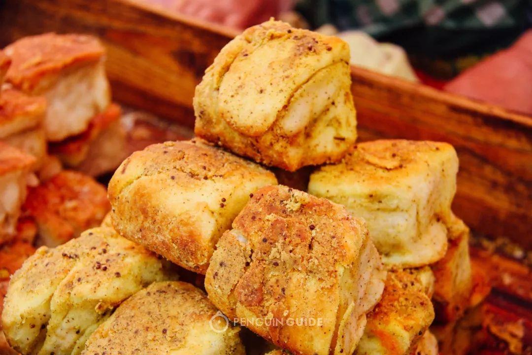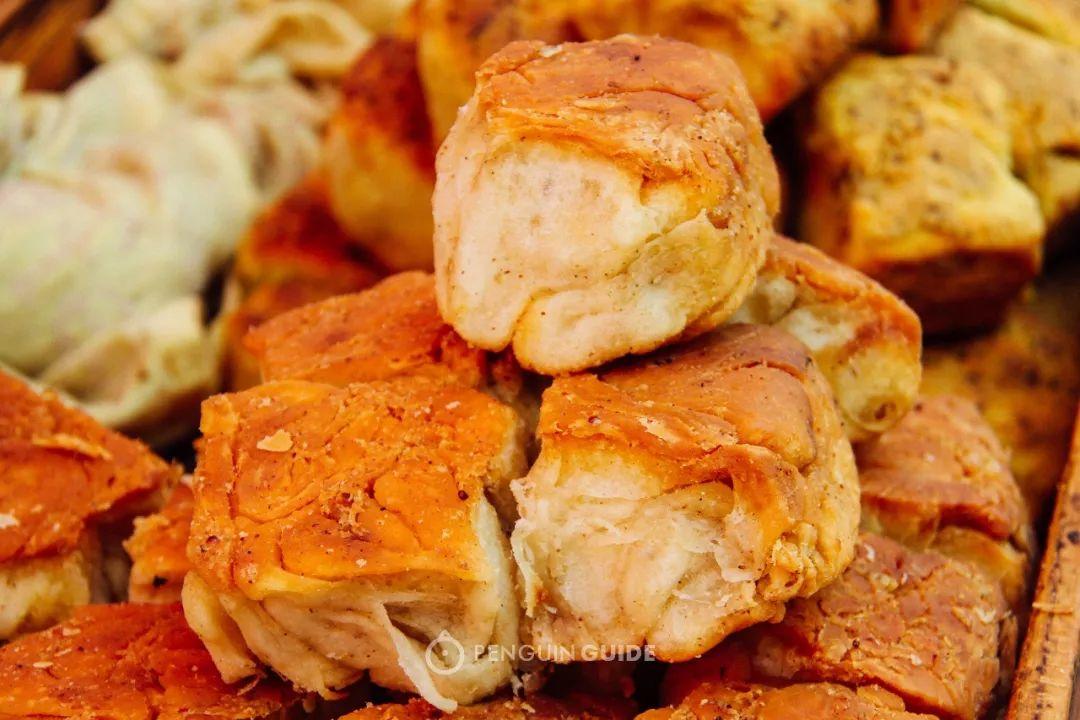 蓬松的发面带着猪油的醇香,最诱人的部位在于表面厚厚一层焦黄的酥脆,咬下去全是满足。
