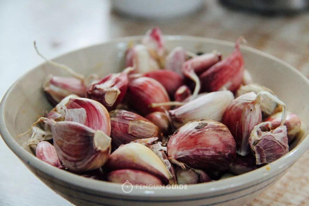西北汉子吃面有套标准流程:点完面,先在铁皮桶里接碗面汤,端回座位抽张餐巾纸铺开,从碗里抓把蒜开始剥皮。两瓣蒜剥好,面就上了桌。三两下拌匀,夹一筷子面呼噜噜吸进去,再咬口大蒜——