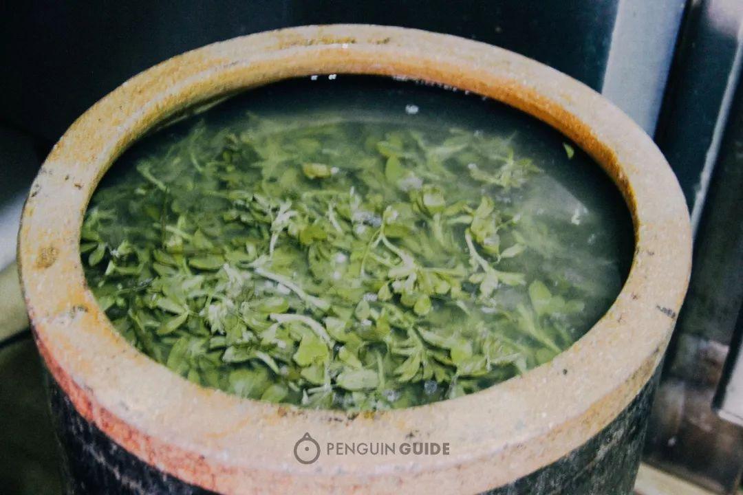 天水人做浆水常用苦苣、苜蓿和芹菜,新鲜的菜焯烫沥干,倒入面汤,还要放些做好的浆水做引,以旧带新,就像一场古老的生物游戏: