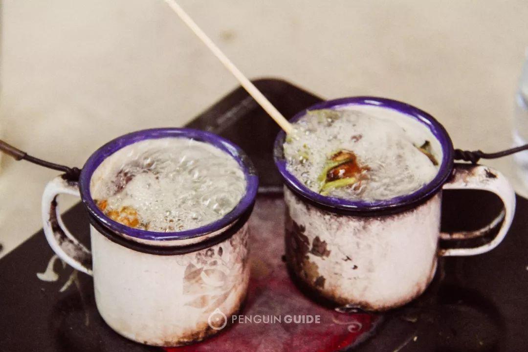 饱满白润的苦杏仁去皮磨碎,加水熬煮,丝滑清香的杏茶要撒一层茴香粉,一清淡一浓烈,碰撞出奇妙的味道: