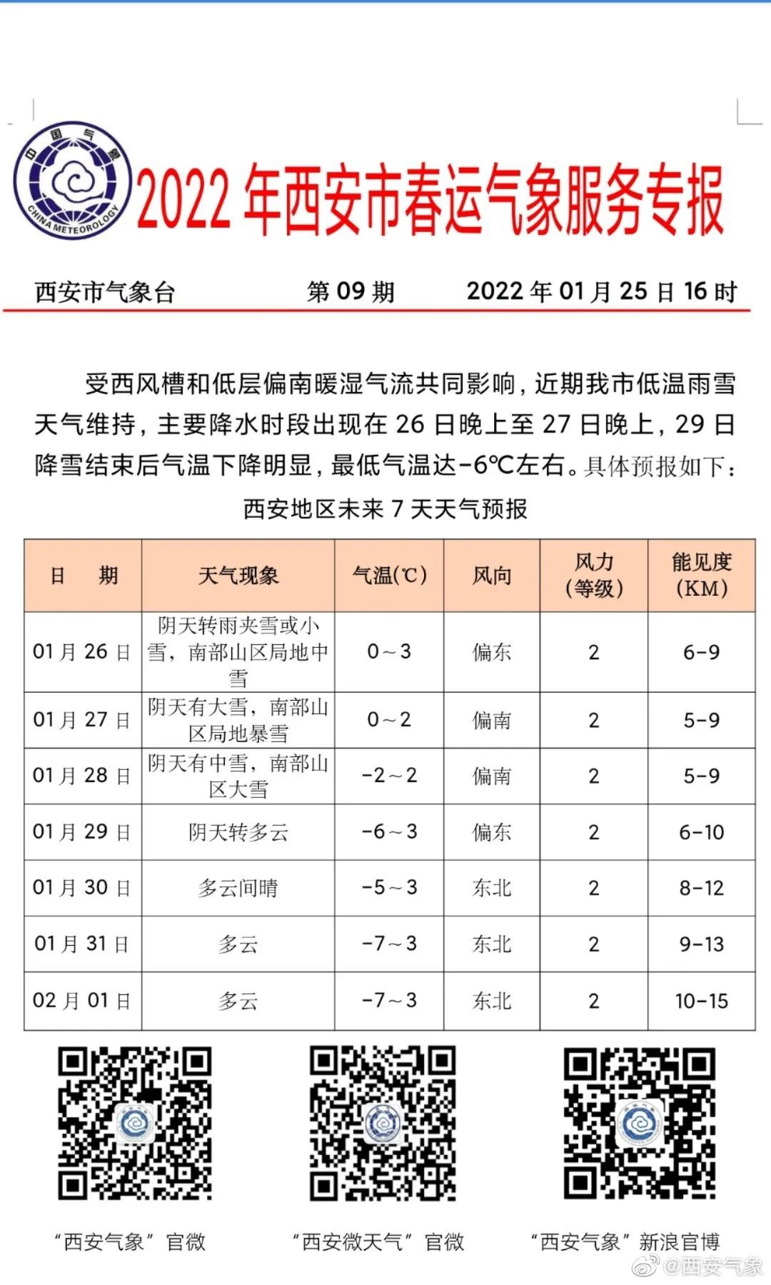 明天白天 全省阴天,陕北、关中有小到中雪,陕南有小到中雪或雨夹雪,其中秦巴山区、陕南东部和南部局地有中到大雪。