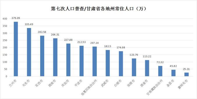 据红黑人口库数据显示,在本次人口普查数据甘肃25019831常住人口中,作为省会的兰州市常住人口为379.09万,户籍人口:331.92万;管辖面积:13083km⊃2;;人口密度约为290人/km⊃2;;