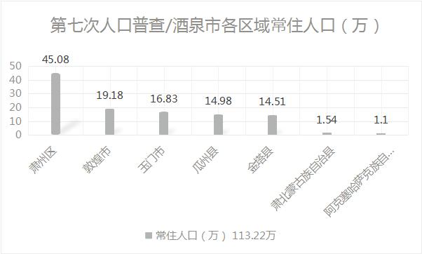 在本次人口普查/甘肃各地州人口排名中,酒泉市以113.22万的人口数位居第十一,其中肃州区人口数位居全市第一。
