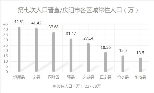 在本次人口普查/甘肃各地州人口排名中,庆阳市以227.88万的人口数位居第五,其中镇原县人口数位居全市第一。