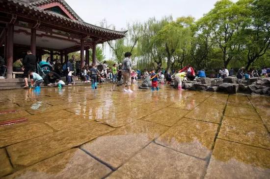五龙潭边则是孩子们的天堂,几乎每个济南人都有儿时在这里喂鱼、嬉水的美好回忆。